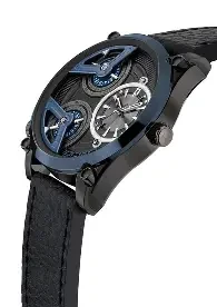 BLU/BLK CASE, BLK/GUN DIAL, BLK STRAP is a men’s wristwatch featuring a
