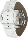 Secure the white leather strap via pin buckle for a custom fit—layer with