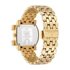 gold-plated case, a shimmering white diamond-set dial, and a bold gold-plated