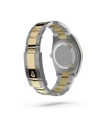 case, a luminous mother-of-pearl dial, and a sophisticated two-tone bracelet.