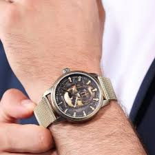 Wear this heritage-inspired piece with formal, vintage, or smart casual outfits for an elegant touch. Adjust the mesh band for a comfortable fit and wipe clean with a soft cloth. Avoid harsh chemicals or extensive moisture to preserve the gold finish. Store in a dry, cool place when not in use.