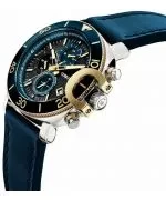 timepiece blending stainless steel and gold-plated case, blue tracker, and gray