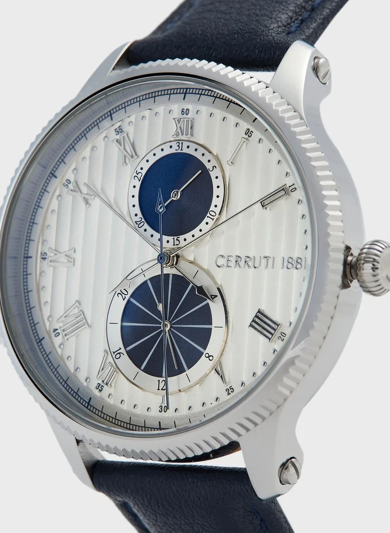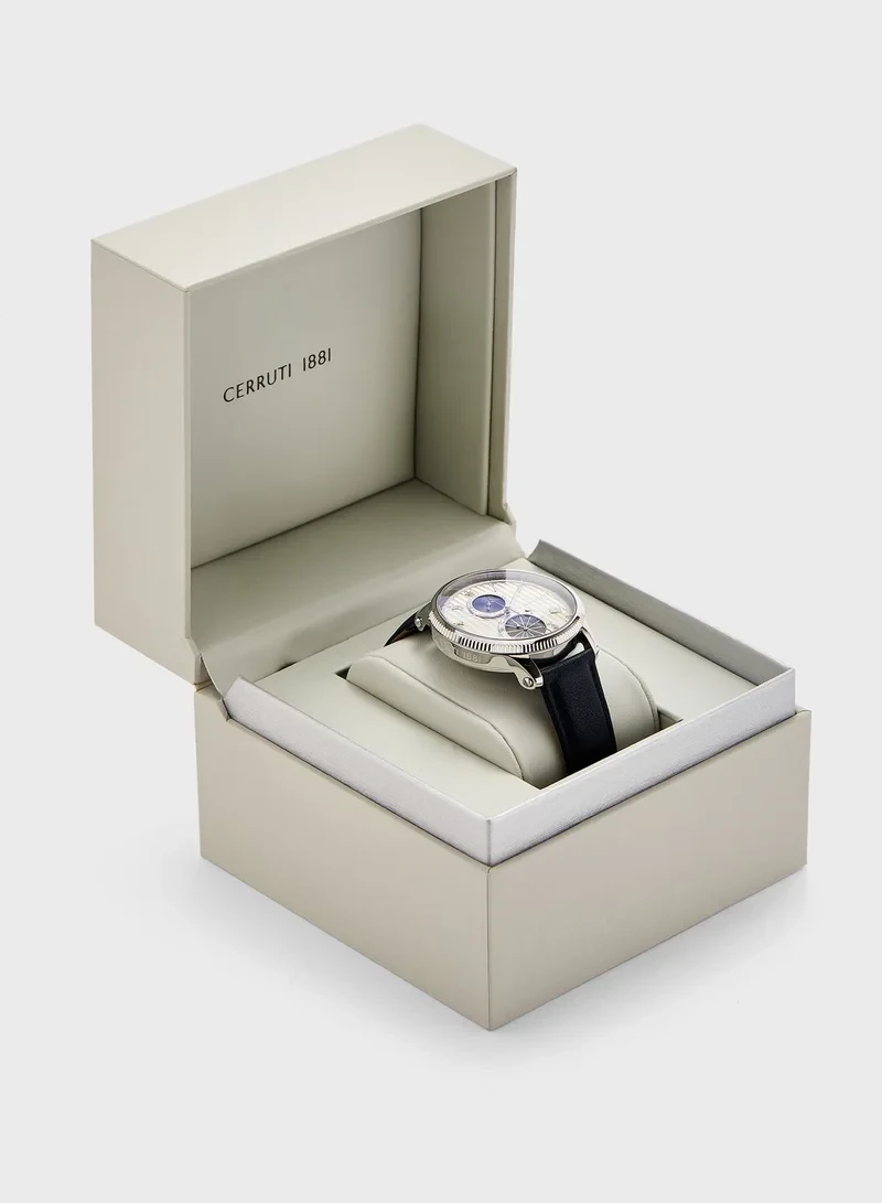 case, silver dial and blue leather strap. It is a versatile gents’ timepiece