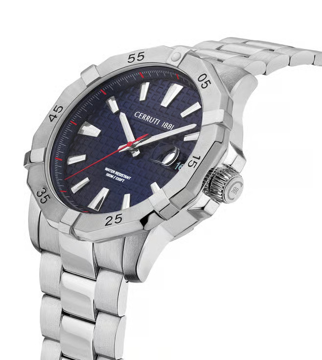 BLUE DIAL is a men’s designer wristwatch from Cerruti 1881 featuring a sleek