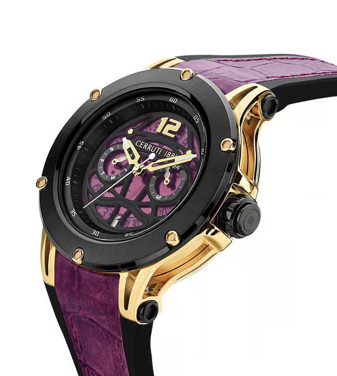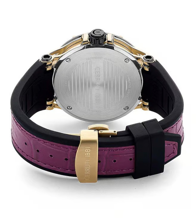 Velletri GP/BLK Case + Black/Purple Silicone Strap. Designed for those who