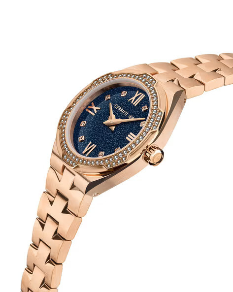 Blue Gem Dial is a luxurious women’s watch featuring a rose gold-plated