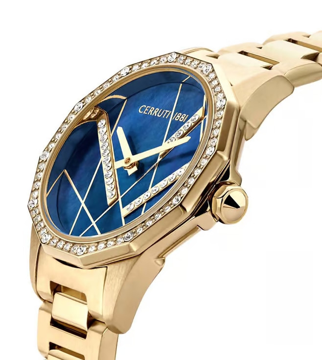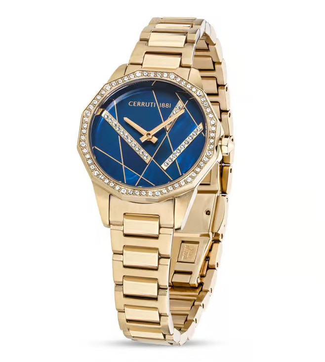 by Cerruti 1881. Featuring a luxurious gold-plated stainless steel bracelet and