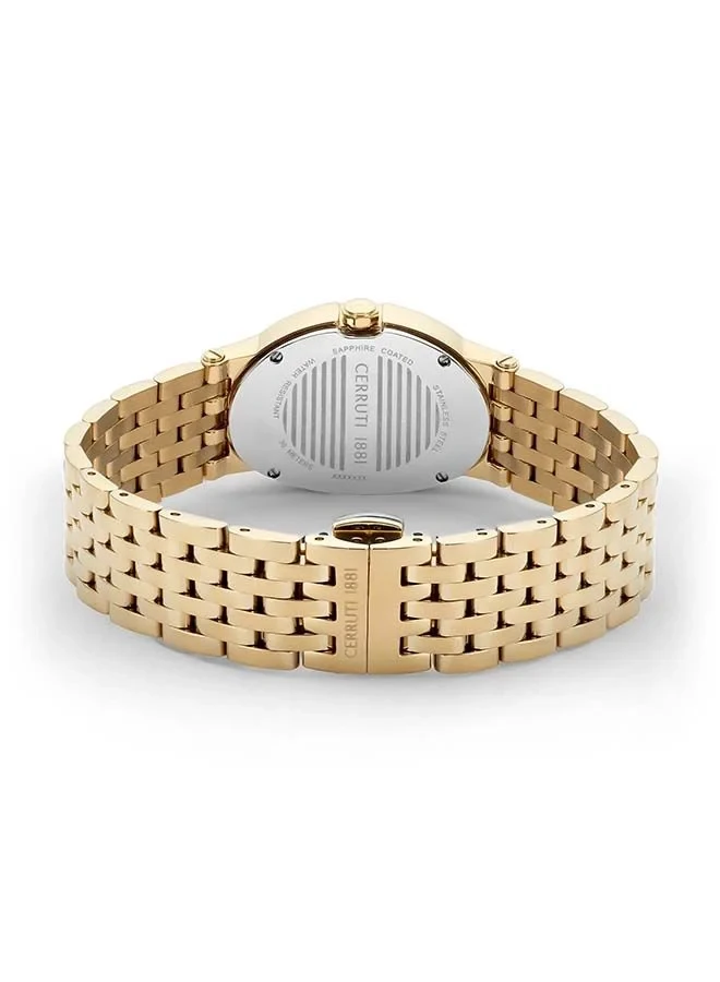 timepiece boasts a gold-plated stainless steel case and matching full-gold