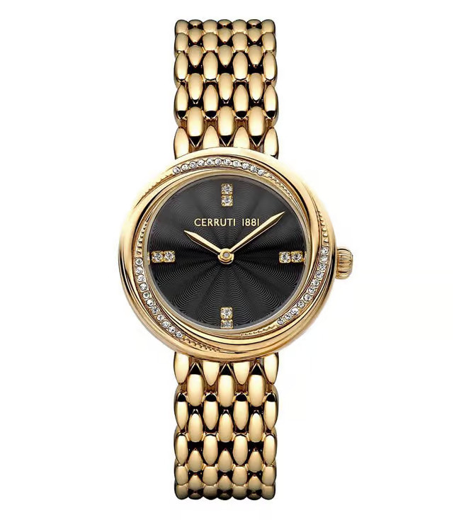 Bracelet, Black Dial is a luxury women’s wristwatch featuring a gold-plated