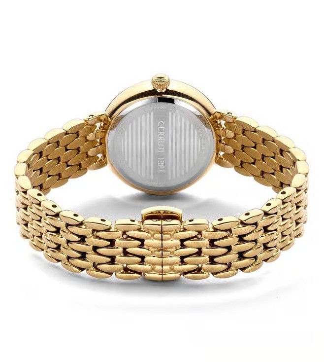 living. Its gold-plated stainless steel case and matching bracelet deliver