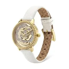 Benefits of Ion Plated Gold Case, White Dial with White Strap, Gold-Tone Hands:
