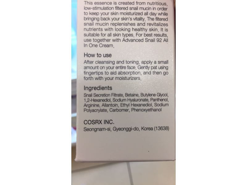 Essence is enriched with a high concentration of 96% snail mucin filtrate,