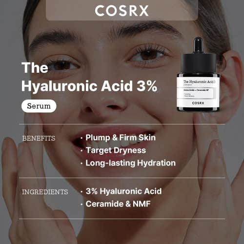 COSRX Hyaluronic Acid 3 Serum 20ML is a deeply hydrating serum formulated with