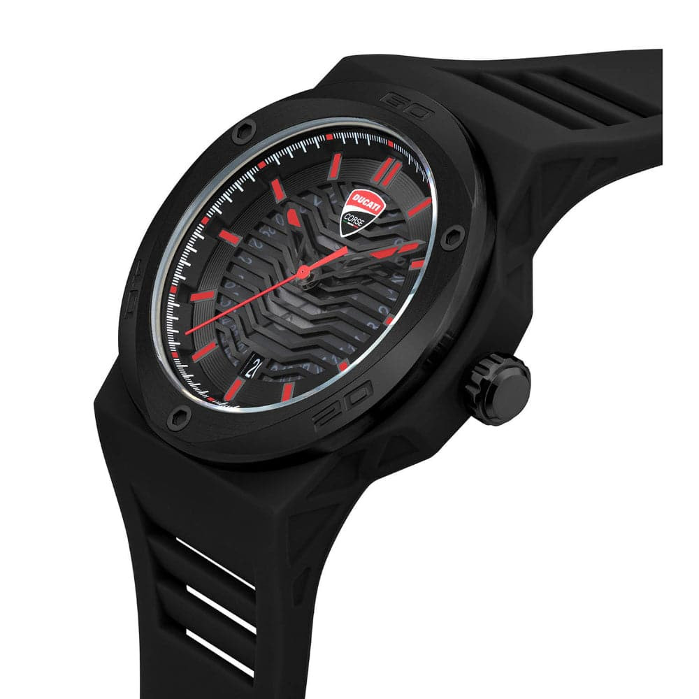 the DUCATI CORSE TRADIZIONE ANALOG BLACK DIAL MENS WATCH, a robust analog