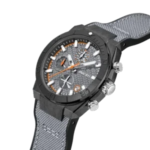 The DUCATI DT007 GUN DIAL GUN CASE GREY STRAP is a dynamic men's chronograph