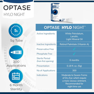 HYLO NIGHT EYE OINTMENT 5GM is a preservative-free, vitamin A-enriched ointment