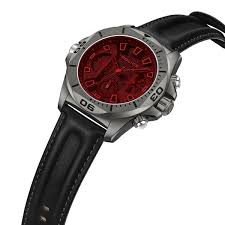 Black dial with red-tinted mineral glass lens for style and glare reduction.
