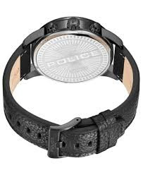 Adjust the black leather strap for a personalized fit using the sturdy buckle closure.