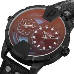 Police IPB CAS, LASER CRY, BLK DIAL, BLK LEA W/IP GUN STUDS men’s watch. This