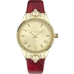 warm champagne dial, and bold red strap. Designed for elegant professionals and
