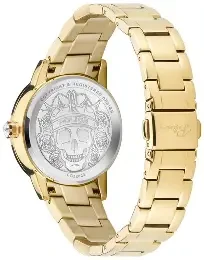 striking IPG gold-plated stainless steel case and bracelet watch featuring a