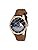 a matching light brown dial and supple leather strap. Japanese quartz movement
