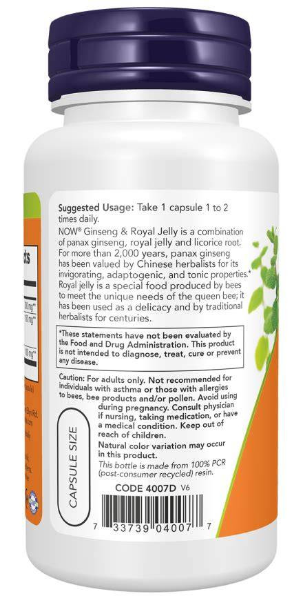 NOW GINSENG & ROYAL JELLY CAP 90 S combines Panax ginseng,