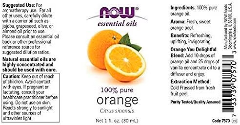 NOW ORANGE OIL 30 ML features pure Citrus sinensis peel oil,