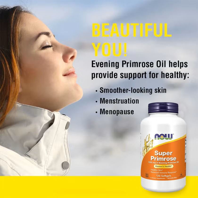 NOW SUPER PRIMROSE 1300MG softgels deliver evening primrose