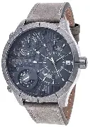 (approx. 52 mm) with black dial and grey leather strap for bold, masculine