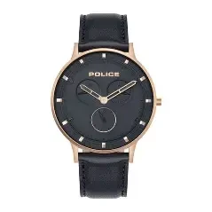 watch features a striking rose gold-tone stainless steel case paired with a