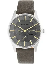 GRY LEATHER (Police Courtesy Silver Case Gunmetal Dial Grey Leather Strap)
