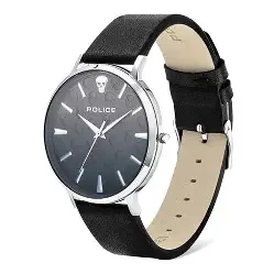 BLK DIAL BLK LEATHER is a men’s analog watch featuring a silver stainless steel