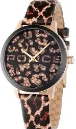 The genuine rose gold leather strap offers comfort and luxury, while quartz