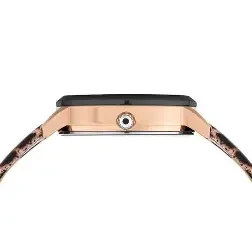 LEATHER is a ladies’ analog watch with a rose gold-plated case, elegant black
