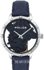 DIAL BLU LEATHER features a 36 mm round silver stainless steel case with a rich