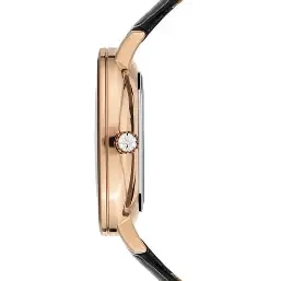 BLK LEATHER is a sophisticated ladies’ analog watch featuring a rose gold case,