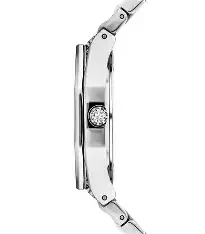 modern feminine elegance with its polished silver stainless steel case