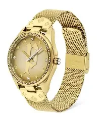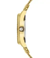 BRACELET is a women's analog watch with a gold-plated case, gold dial, and