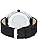 to the steel case and dark dial. Clear mineral glass protects the dial, while