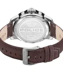 of color and sophistication with the Police SS CASE, BLUE DIAL, BROWN STRAP.