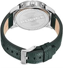 Adjust the green leather strap using the secure buckle for the perfect fit.