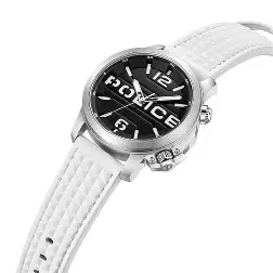 statement with the Police STEEL CASE, BLACK DIAL, WHITE LEATHER. The pristine