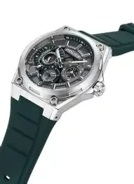 The STEEL CASE,GREY DIAL,GREEN SILICON pairs a durable