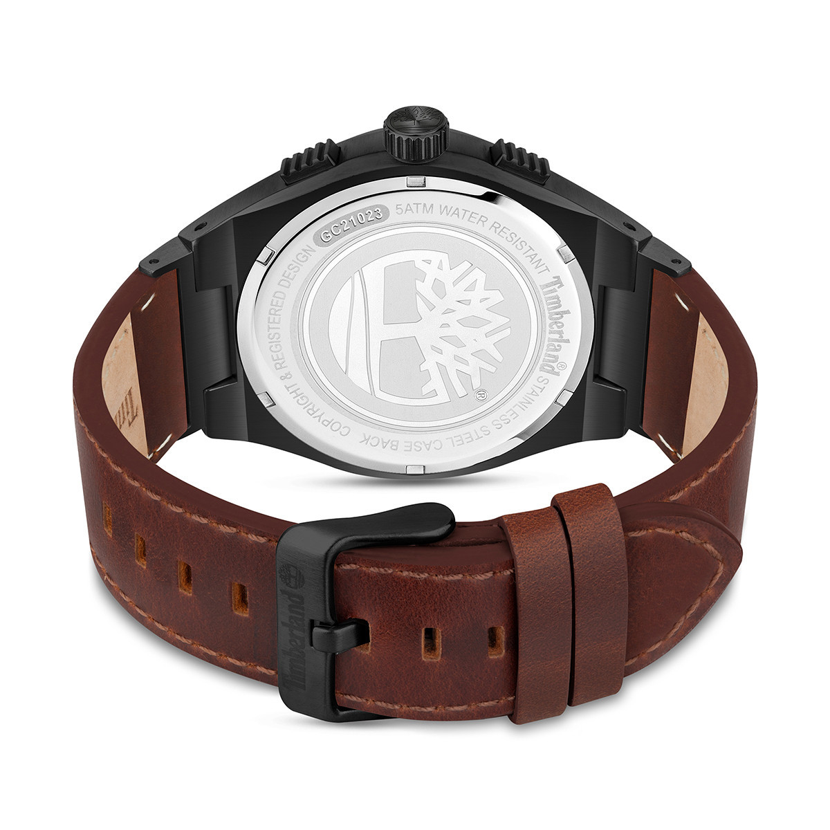 The Timberland Aldridge TDWGC2102302 blends modern design with reliable chronograph functionality. Its durable 46 mm black ion-plated stainless steel case frames a gunmetal grey dial equipped with chronograph subdials, luminous hands, and a date window for versatile timekeeping. Complemented by a rich redwood brown Better Leather strap, sourced sustainably and certified by the Leather Working Group, it offers both comfort and eco-conscious style. The watch uses precise Japanese Miyota quartz movement, protected by scratch-resistant mineral glass, and provides water resistance up to 5 ATM. This sophisticated yet rugged accessory pairs perfectly with casual and formal wardrobes.