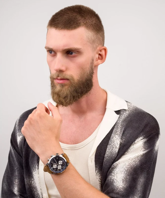 The Timberland Henniker II TDWGF0009501 blends functionality with refined design, perfect for modern men balancing work and leisure. This watch features a 46 mm stainless steel case housing a sophisticated blue multifunction dial with day, date, and 24-hour subdials. The high-quality brown Better Leather strap, certified by the Leather Working Group (LWG), ensures comfort and sustainable style. Protected by durable mineral glass, the quartz movement offers reliable and precise timekeeping. Resistant to water up to 5 ATM, this watch endures daily moisture and splashes, making it a versatile addition to any wardrobe.