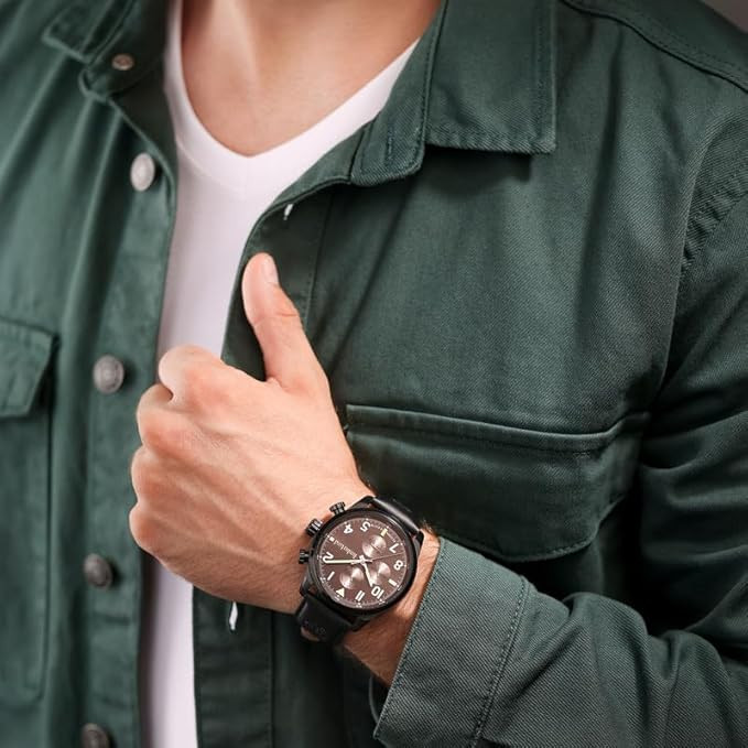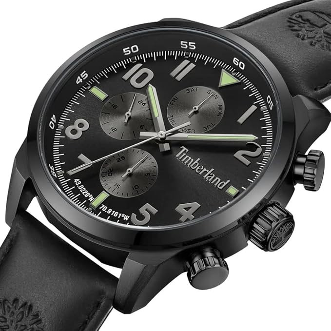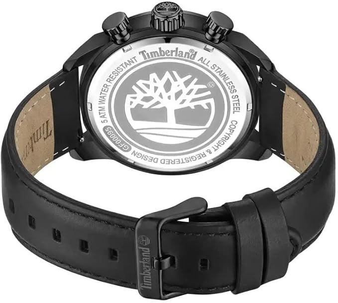 The Timberland Henniker II TDWGF0009502 is a multifaceted timepiece combining elegance and functionality. Its 46 mm round black ion-plated stainless steel case encloses a black multifunctional dial with sub-dials for day, date, and 24-hour display. The black Better Leather strap is certified by the Leather Working Group (LWG) for sustainability and offers comfortable wear. Protected by scratch-resistant mineral glass, the watch runs on reliable quartz movement. With 5 ATM water resistance, it withstands splashes and daily moisture, making it a versatile watch for everyday and formal occasions.