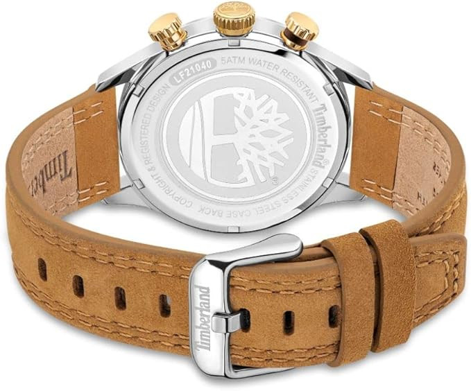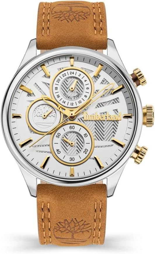 The Timberland Ladies Sheafe TBL.TDWLF2104003 watch merges function and fashion with a timeless design. It sports a sturdy stainless steel case paired with a silver dial detailed with chronograph subdials for enhanced utility. The watch is equipped with a genuine wheat-colored leather strap secured by a traditional buckle clasp for comfort and style. Mineral glass protects the dial against scratches, ensuring durability. Powered by accurate quartz movement, the Sheafe is water-resistant to 5 ATM, suitable for daily moisture exposure. Presented in original Timberland packaging, this watch comes with a 24-month manufacturer’s warranty.