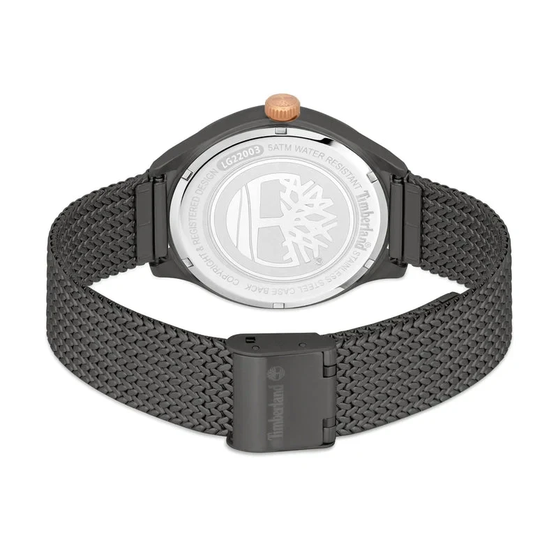 The Timberland Lincolndale TBL.TDWLG2200301 watch blends elegance with rugged urban style. Constructed with a 38 mm gunmetal stainless steel round case and a matching gunmetal mesh stainless steel bracelet, it combines comfort with a modern aesthetic. The gunmetal dial is complemented by sharp analogue hands, and is protected by durable, scratch-resistant mineral glass. Powered by precision quartz movement, this watch guarantees accurate timekeeping. With a water resistance rating of 5 ATM, it handles splashes and rain gracefully. Perfect for formal and everyday occasions, it also comes with a 24-month manufacturer's warranty and original packaging for gifting or collection.