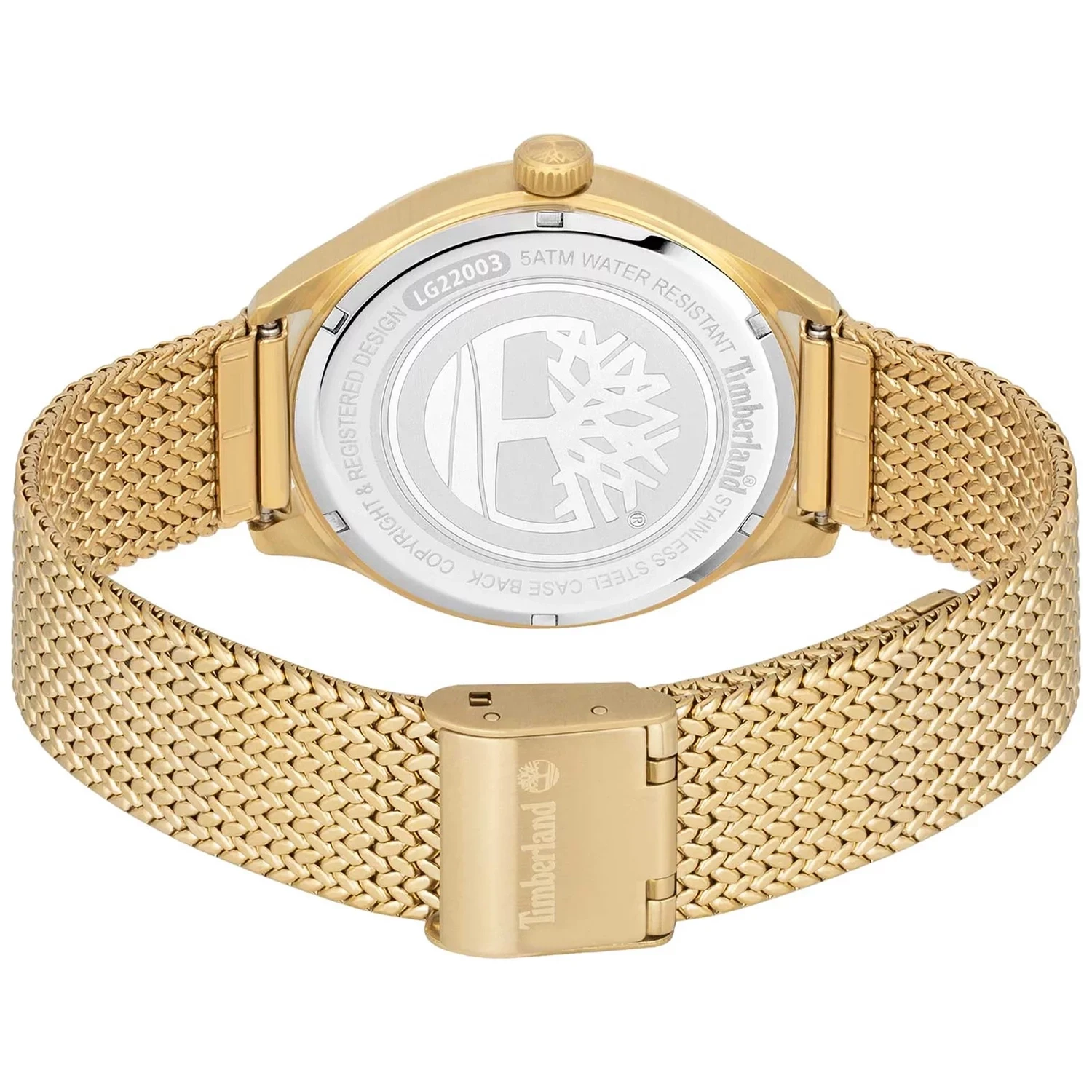 Timberland’s Lincolndale watch offers a refined accessory for modern women combining sophisticated aesthetics with robust design. Crafted from gold-tone stainless steel with a 38 mm round case, it includes a coordinating mesh bracelet with an easy clip clasp for a secure and adjustable fit. The gold dial, protected by scratch-resistant mineral glass, is powered by precise Miyota quartz movement from Japan, ensuring reliable timekeeping. Rated at 5 ATM water resistance, it withstands daily moisture and splashes, making it ideal for versatile wear. Packaged in its original Timberland box with a 24-month manufacturer warranty, the Lincolndale model is a timeless addition to any collection.